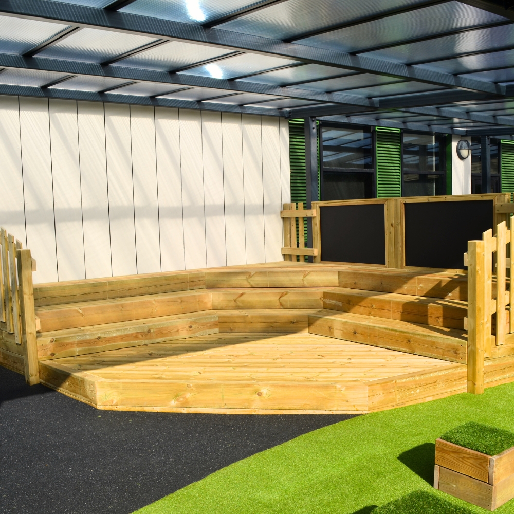 The Corner Amphitheatre with Planter is a versatile and engaging outdoor feature, designed to create an inviting performance space while also adding beauty and greenery to your school or community area. Customisable to suit your needs, this amphitheatre is ideal for Key Stage 1 (KS1) and Key Stage 2 (KS2), offering a space for performances, storytelling, outdoor lessons, and creative play.