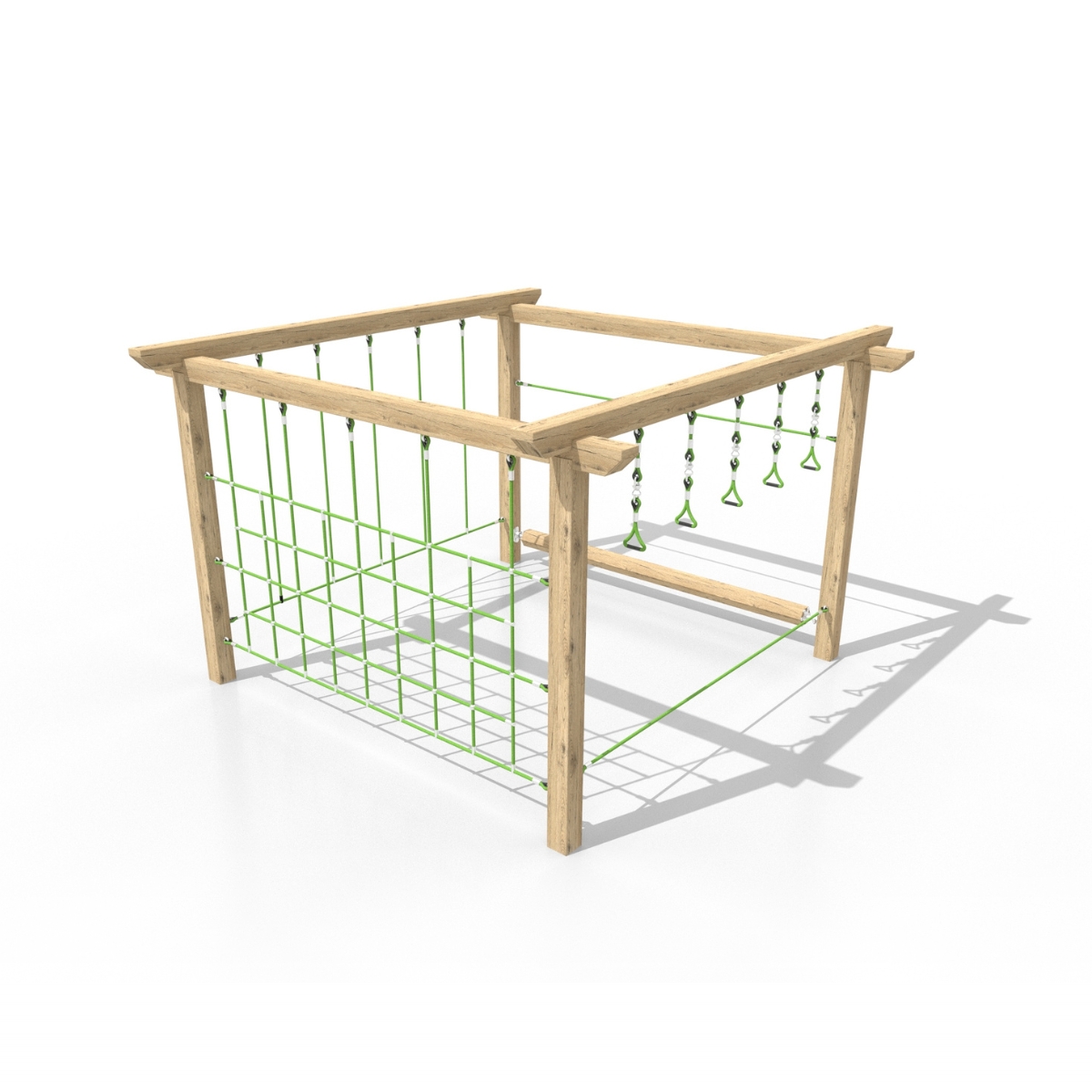 This dynamic outdoor obstacle combines climbing ropes, a balance beam, and a rolling log, providing an exciting test of strength, agility, and coordination.
