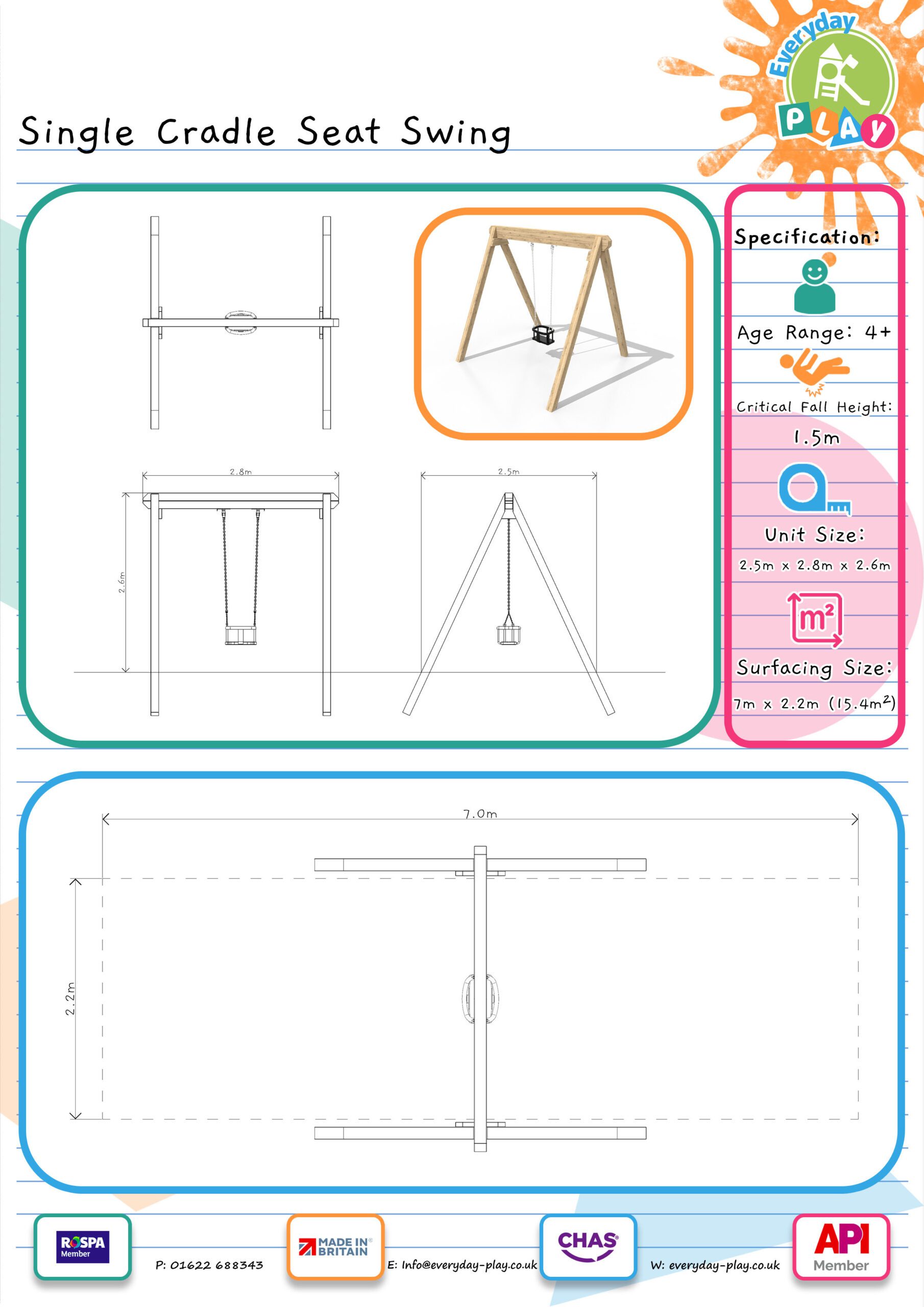 Ideal for public playgrounds, daycare centres and family-friendly parks, the Cradle Swing encourages early motor skill development while offering a calming and enjoyable experience for the youngest children. With its combination of safety, comfort and durability, the Baby Swing is a perfect addition to any playground or play area.