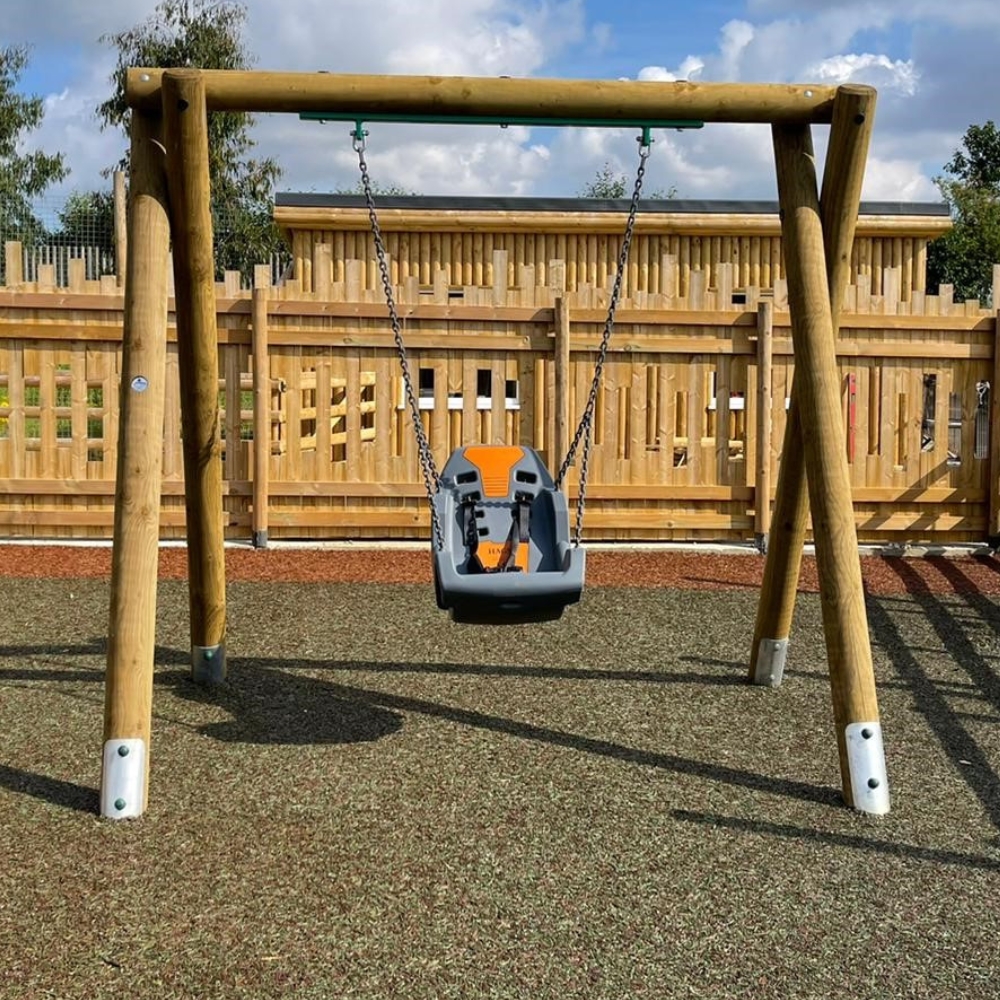 The Single Inclusive Seat Swing is designed to provide an accessible and enjoyable swinging experience for all children, regardless of ability. Featuring a wide, comfortable seat with high sides for added support, this swing is perfect for children who may need extra stability while they play. The inclusive design ensures that children with additional needs can join in the fun alongside their peers, offering a sense of independence, inclusion, and freedom.