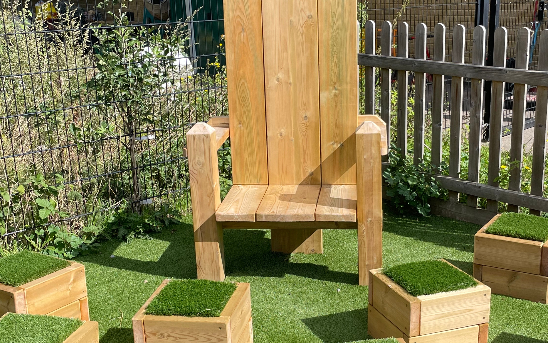 Our Storytelling Chair is a unique and inviting feature designed to encourage imaginative play and group storytelling. Crafted from durable, high-quality wood, this chair provides a cosy and captivating spot for children to sit and engage in storytelling activities, whether on their own or in a group. Ideal for schools, playgrounds, or sensory spaces, the Storytelling Chair fosters creativity, communication, and social interaction. Its charming design sparks a love for stories and learning, making it the perfect addition to any educational environment. You can see one of our Storytelling Chairs we installed at Allington Primary School here.