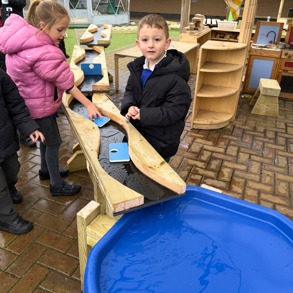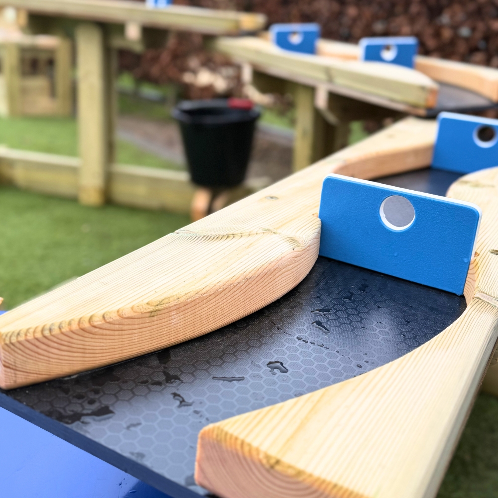 Children can experiment with flow, watch how water travels down different heights, and discover how positioning affects speed and patterns. The chutes encourage problem-solving, collaboration, and imaginative play as children test different arrangements to see which allows the water to move most easily.